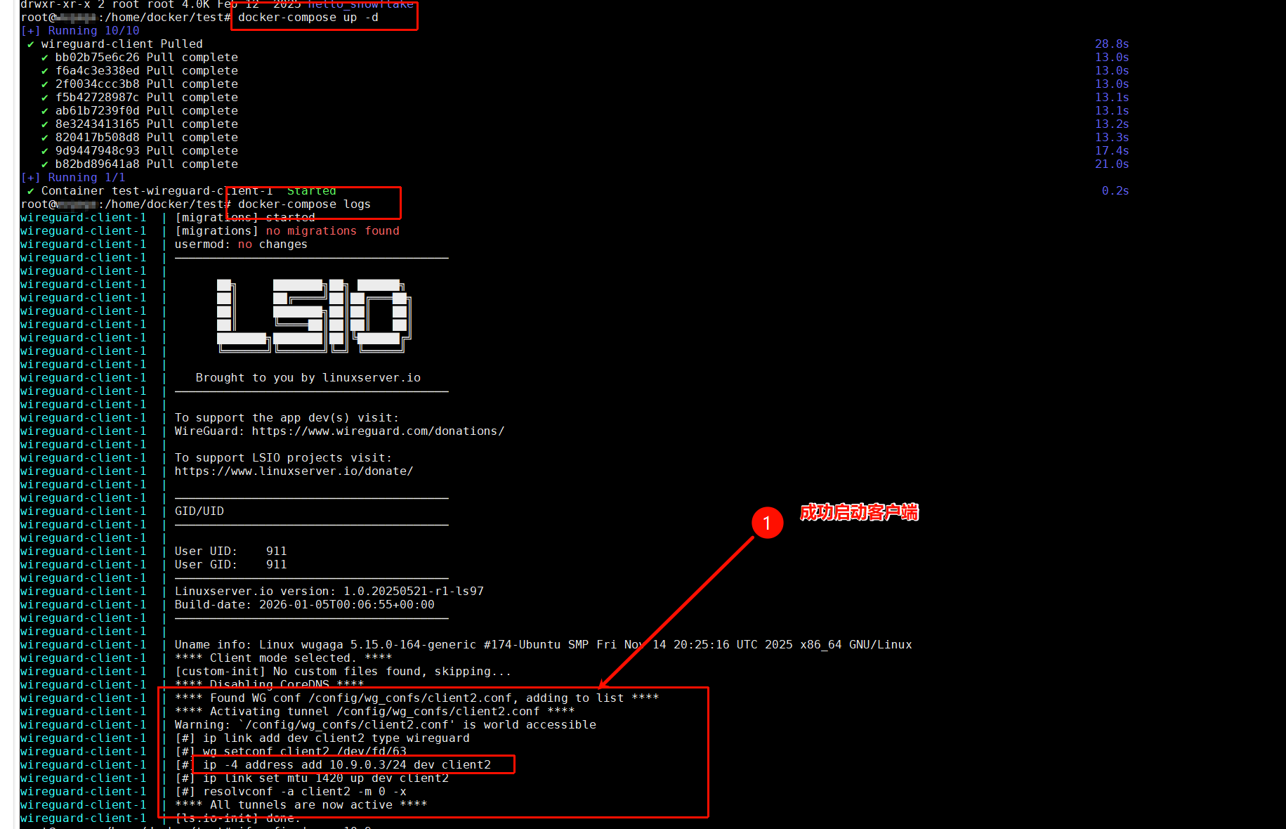 如果是服务器环境,可以选择在Docker中启动 wireguard 客户端